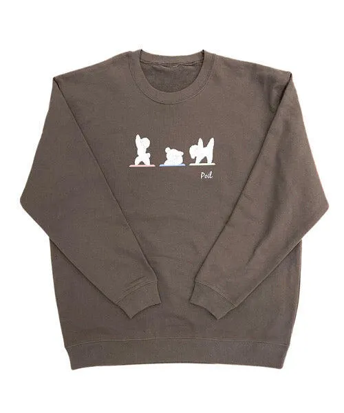 ビションフリーゼがヨガをしている様子が可愛いスウェットプルオーバーです。 三日月のポーズ-鋤のポーズ・半月のポーズを伸び伸びとしている様子を転写プリントで施しました。 インナーにタートルネックのインナーなどを着用していただければ冬の寒い時期でも着回し可能ですし、春先の肌寒い時期までお使いいただけます。 〈素材〉 10オンスの綿100%の裏毛素材を使用しています。 生地にしっかりと厚みがあるので肌寒い時期から冬の時期など、使い勝手の良い素材感です。