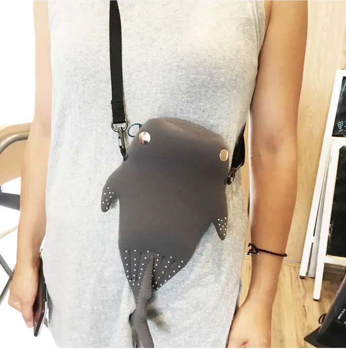 大人気のジンベイザメポーチ。 ケータイ、ハンカチ、お財布などが入るサイズです。 裏にはコバンザメも!