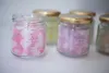 ジャム瓶いっぱいに、ハートのかけらを集めたLOVE 灯すと、重なり合ったたくさんのかけらたちが照らし出され とても可愛い姿を見せてくれます カラフルな色使いと、華やかなローズの香りで あなたの日常を特別な時間にします 自分へのギフト・リビングのインテリアアイテムに、 また、大切な方へのプレゼントにもオススメの ロマンチックで可愛いキャンドルです 灯した炎は、点いた瞬間は一度小さく、その後すぐに大きく膨らみ 辺りを温かく、儚いヒカリで照らします そんな灯りをどうぞご堪能ください /////////////////////////////////////////////////// お好みの色の組み合わせを選べます 〈ピンク×ピンク〉 〈ライトグリーン×水色〉 〈ピンク×水色〉 〈イエロー×パープル〉 【香り】ローズ 【燃焼時間】約12H(気温・空調・環境により異なる) 『ひいらぎキャンドルの〈designed〉』 「デザイン」に焦点を当てた、 初心者さんにもおすすめの遊び心のあるキャンドル カラフルな色使いのキャンドル 徹底的にシンプルにこだわったキャンドル ひいらぎキャンドルの『designed』シリーズは、 「デザイン」にこだわったキャンドルです 色遊びをしたり、モチーフ遊びをしてみたり 個性的なフォルムのキャンドルが出来上がり! もちろん、灯りの美しさも計算した作りで インテリアとしてだけでなく、是非そのヒカリを楽しんでください ・・・・・・・・・・・・・・・・・・・・・・・・・・ ひいらぎキャンドルでは、 キャンドルは一点一点全て手作業で作成しています。 キャンドル本体の製作だけでなく、ラベルやパッケージのデザイン、シールの貼り付け、 梱包など、キャンドルが生まれるところから旅立つまでの間の全ての制作作業を 自身で行なっております。 【ご注意点】 <こちらの商品は受注生産になります> ・香りの良い新鮮なものをお届けする為、注文を頂いてからお作りしています ・1つ1つ丁寧に作成しておりますがハンドメイドの為に画像と同じ作品は作れません 手作業のため大きさに多少の誤差・お色味や形状が若干異なる場合がございます ・お客様よりご注文を頂いてから、すぐに製作に入らせて頂きます 途中でのデザインや素材など一切の変更、製作のキャンセルはお受けすることが出来ません ・注文日より1週間以内に発送しておりますが、 お急ぎの方・ご希望納期のある方は必ず事前にお知らせ下さい。 配送地域、交通事情、素材の在庫等の理由により遅延する場合がございます お届けまでに2週間ほどかかる場合もございます どうぞ余裕を持ってご購入くださいませ ○火を取り扱う製品となります。「attention」という注意事項を同封致しますので、 必ずお読みいただきご使用下さいますよう宜しくお願いいたします。 ※当店のキャンドルをご使用の上で起きた事故についての責任は負いかねます※ 予めご了承ください
