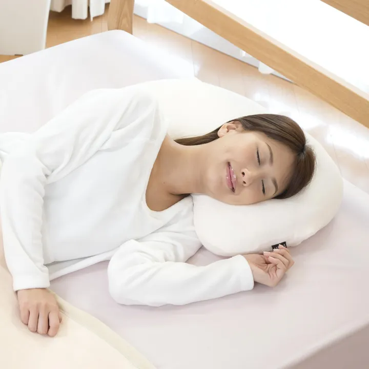 快適な睡眠は美への近道!寝ている間にもお肌に無理な負担をかけてませんか? プロの美容家との共同開発した安眠美容枕です! 睡眠中の寝姿勢による首のラインに着目。枕のポジションからできる首シワの緩み、たわみができにくいように開発。 寝姿勢だけではなく、枕としての寝心地、快適性はもちろん、心地良い眠りを追求して生まれた優しい感触の枕に仕上げました。 【製品特長】 ・頸椎部分を優しく支えつつ、頭部を包み込むように沈めてあげることにより首のラインを美しく保ちます。 ・肩のラインに沿って包み込むようなカーブ形状でソフトにフィット。安心感のある優しく包み込むように支えてくれます。 ・中綿には毛玉状のつぶ綿を使用。流動性のあるつぶ綿が頭部の形に合わせて動き、 より快適なフィット感を生みだします。 ・側地には縦横にストレッチ性のある素材を使用。 つぶ綿との組み合わせで、ソフトでありながらもしっかりと頭部を支えます。 ・首筋のビューティーラインを一定に保つために、首を支える部分には中綿が偏らないアーチサポート仕様。 ・カバーには、スクワラン配合の繊維「パポリス」を使用し、お肌が触れた時にも低刺激、 保湿性もあるのでソフトでしつとりとした肌触りです。 ・本体 カバー共にウォッシャブルで清潔にお使いいただけます。 ・国内自社工場より直送でお届けします。