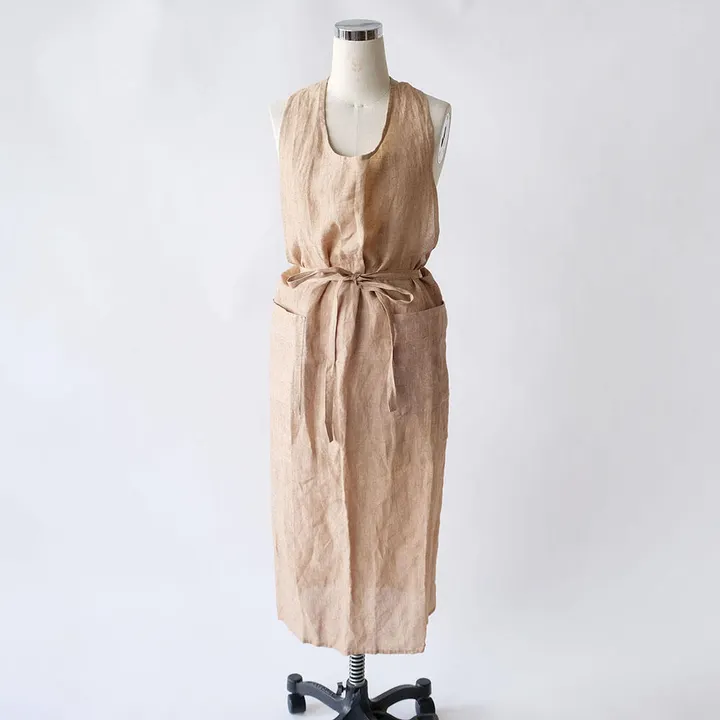 テーブルに豊かな色彩を配置していくようなイメージで作られた、リネンのファブリックシリーズ。 女性らしいカーヴィなホルターデザインのエプロンは、ボトムが広がりすぎず、かわいらしくなりすぎない大人なデザインです。 腰で紐を結ぶ為、シルエットがキレイに見えます。 *ポケットあり 【首掛け】【ファブリック】【キッチン】【カフェ/喫茶店】【X】