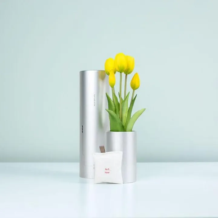 「生花みたいだけど、もっと自由」 水替え不要、花粉なし、虫も寄らない。なのに、本物そっくりの見た目と、チューリップの生花に近いやさしい香り。 ノディトのチューリップは、「より良いオフィス、より良い時間」をコンセプトから生まれたアートフラワーです。デスクの片隅に置いたとき、ふと顔を上げたとき、小さな彩りが一日の空気を変えてくれます。 ★上質な見た目と生花に近い香りで気分をポジティブにさせるインテリアです。 ★紙製の円柱パッケージの底側がそのまま花瓶となり、持ち運びし易くギフトに最適です。 ★3つの物語を持ち、持つ人の生き方や価値観によってその存在意義が変化します。 【Nodito チューリップの特徴】 01. ずっと変わらない美しさ 02. 香りつきで空間をリフレッシュ 03. 本物そっくりの手触りと見た目 04. 花瓶付き(紙製)ですぐに飾れる 05. 虫が寄らず清潔で安心 06. ゴミが出ないエコなパッケージ 【A.D.2084の物語】 それは、未来から届いた記憶の花。2084年の地球は、植物も香りも消えた無機質な世界。 「Tulip Ever After: Memories of Scent」は、そんな未来で発見された“過去の春”を封じ込めたアーカイブオブジェクトです。人工のチューリップに宿るのは、かつて存在した自然のかたちと香り。ありえない未来に、ありえた過去の記憶が残されています。 シルバーのパッケージは、まるで未来の保存容器のようです。 自然を知らない未来人が、今を生きる私たちに問いかけます。 「あなたは最も美しい時代に生きているのでは?」 未来を思いながら、今この瞬間のかけがえのなさに気づかせてくれる、一輪のチューリップです。 『大地の香り』 ※ピンク筒とは違います。 トップノート:ベルガモット、オレンジ、バーナル ミドルノート:ローズマリー、パイン ベースノート:オークモス、ベチバー、サンダルウッド 【利用方法・操作方法】 ① 筒状の箱を空けたら直ぐに飾れます。上側の筒は引越しなど移動を伴う際に便利ですので、保管しておくことをおすすめします。 ② 香り袋はプラスチックの袋から出して、筒の内側に置いてください。密閉された空間ほど香りが長持ちします。