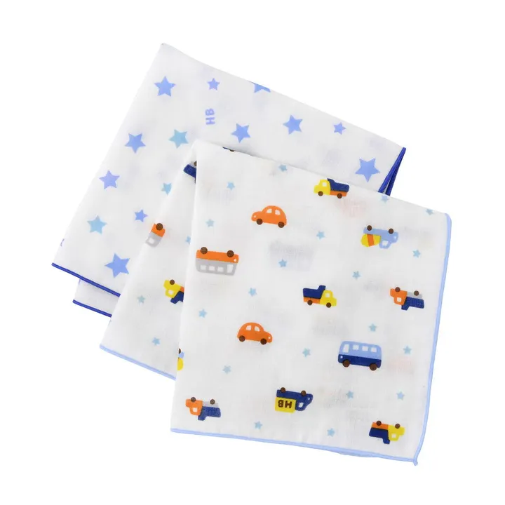 ガーゼハンカチセット(76-8037-490) 白×ブルー
