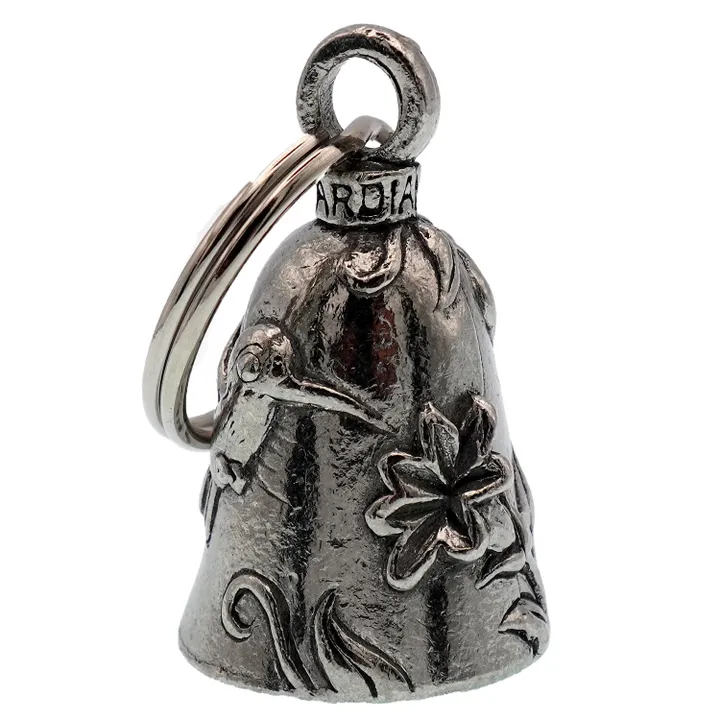 アメリカ製ガーディアンベル社製ガーディアンベルです。 MADE IN USA アメリカ製 交通安全 魔除け 御守り ガーディアンベル アメリカのライダーの間には、事故や、転倒の原因は「道路にひそむ悪魔」によるいたずらだという伝説があります。悪魔は走る者に悪戯やトラブルを運んできます。このベルは美しい音色で悪魔たちを追い払うと言われ愛されています。そんな悪魔のいたずらを防ぎ、御守りとなるのが、守護者のベルという意味を持つガーディアンベル。 日本でも鈴の音(ね)は神道では魔除けの音と言われています。ピューター製の鈴でいい音色でガーディアンベルはデザインも様々あります。 またガーディアンベルにまつわる伝説として、プレゼントとして送られたベルの効果は、自分で手に入れたものの2倍になると言われています。 それゆえに彼氏・彼女・友達・家族へのプレゼントとしての人気も非常に高まっています。 シルバーアクセサリーのようにおしゃれに装着できて素敵な音色を奏でるガーディアンベル。 バイカー以外にも自転車や旅・交通安全のお守りとしてお使いいただけます。 カバン・ランドセル・キーホルダー・ペットの首輪等に付けてお使いください!! ※タイラップ等でバイクのフレームにも簡単に取り付けできます。 アメリカンモデルだけではなく、旧車ファン、レプリカライダーまで、さらにバイクだけでなく、自転車や車にもピッタリな御守りとなっています。 アクセサリーとしても人気で、アイディア次第で車体だけでなく、キーホルダーや鞄など、どこにでも付けておしゃれに楽しめます。