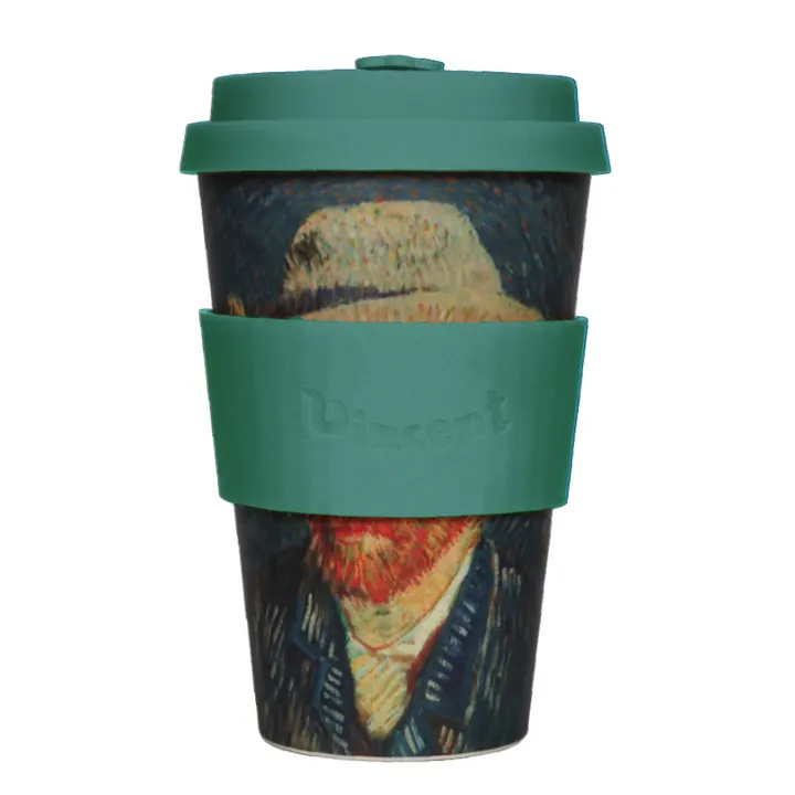 Ecoffee Cupの人気シリーズ「ヴァン・ゴッホコレクション」に待望の新柄が加わります。 デザインは全3種。 14ozの「Self-Portrait」(セルフ・ポートレート)は、ゴッホの数ある自画像の中から、 1887年の『灰色のフェルト帽子の自画像』を採用。激しい筆致の中にも穏やかな表情が見えます。 ヴァン・ゴッホ 世界で最も有名な画家の一人、ヴィンセント・ヴァン・ゴッホ。 彼が残した激しいタッチと大胆な色使いで描かれた作品は、後の芸術家に大きな影響を与えました。 Ecoffee Cup / エコーヒーカップについて エコーヒーカップは、鮮やかなカラーやユニークな模様が魅力のサスティナブルなコーヒーカップです。 カップ本体の素材をバンブーファイバー(竹の繊維)から植物由来バイオプラスチックの一種・ポリ乳酸(PLA)にリニューアルし、より環境に優しい製品へと進化しました。人体への有害性が指摘されているBPA、BPS、フタル酸エステルは含まれません。ホルダーやフタは食品グレードのシリコンでできており、ホットドリンクにも対応しています。 サイズ:約 W9 ×H14.5 cm 容量:約 400 ml 重量:約 175 g ~本体~  ・素材:ポリ乳酸(PLA) ・耐冷温度:約 -20 ℃ ・耐熱温度:約 100 ℃ ~蓋、スリーブ~ ・素材:シリコーンゴム ・耐冷温度:約 -20 ℃ ・耐熱温度:約 120 ℃ ※商品写真はできる限り実物の色に近づけるよう徹底しておりますが、お使いのモニター設定、お部屋の照明等により実際の商品と色味が異なる場合がございます。
