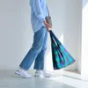 100%使用済ペットボトル再生素材を100%使用。わずか50gの軽さと20kgの耐荷重で、日常使いにやさしく頼もしい。豊富なデザインが揃い、より楽しく携帯可能