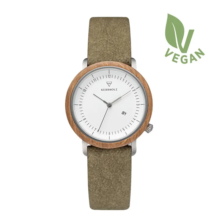 ケース素材 : ウォルナット / ベルト素材 :ヴィーガンレザー(紙素材) / ムーブメント : クオーツ