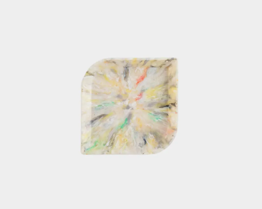 【海洋プラスチックごみ、ほぼ100%で作られたプロダクト】 独自の成形方法により、ゴミが持っていた色をそのままに一つずつ異なる色・模様を持っています。