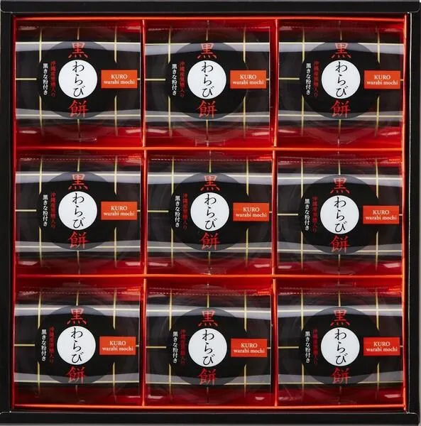 まろやかな黒糖の風味広がる『もっちり ぷるん』とした黒わらび餅。 香ばしい黒きな粉との出会いが、美味しさを引き立てます。 【内容】 黒わらび餅 89g×9個 黒きな粉  3.5g×9個 【必ずご確認下さい】 ※メーカー直送のみの対応となります。(送料込み・1ケースから直送可能) ※<中島大祥堂・直送商品>のみでご注文をお願いいたします。<中島大祥堂・直送商品>以外の商品との混載発注は出来ません。 ※北海道・沖縄離島等には発送が出来ません。ご了承ください。 ※通常、ご注文を頂いてから1週間程度でのお届けですが、大型連休・年末年始または天候の影響により1週間以上かかる可能性がございます。その際は、改めてご連絡いたします。 ※包装紙同梱