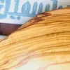 サイズ:約53×15~25cm 重さ1431g *人気のオリーブの木の超かっこいいカッティングボードシリーズです。北アフリカの雨があまり降らない大地で400年以上生き抜いたオリーブの木の圧倒的な木目が特徴「大自然のアート」 *オリーブの木 特有の滑らかな形、木目の表情は大自然の恵みの力をそのまま残した生命力溢れる絶品です。これぞ北アフリカの大自然アート、長い年月の間、厳しい自然の中を何百年も生き抜き育った結果が表れています。この作品には圧倒的な「見ごたえ」があります。目にするたびに喜びと元気が湧き出ることでしょう!!北アフリカではオリーブの木は1000年近くも生きる不死身「聖なる木」とされます。 *400年前後の古木を使っているためモノによっては古木ならではの自然な亀裂がございます。 *キッチンで使ったり、テーブルウェアとして使ったり、はたまたインテリアとしてその存在感を発揮させたりと楽しみ方は無限大。程よい大きさは、卓上でパンやチーズ、オードブルやフルーツを盛り付けるのにも最適です。生ハムなどの盛り付けにも。そのままお皿としてご利用いただくこともできます。 *食卓以外でもアクセサリーや陶器などディスプレイにも素材力を発揮し、お料理だけでなくさまざまな小物のステージを演出してくれるでしょう。 *地中海の恵みをたっぷり浴びたオリーブの木は、ゆっくりと成長するので大きな木になるには何百年とかかります。その為、木の密度は高くなり、硬く傷つきにくくなります。色が変わってきたらオリーブオイルを塗ってください。長く使っていただける一品です。 *写真で細かくご案内していますが、400年以上の古木という材質上、ご案内するボードは一点一点、異なる木目や節があり、色も各々違います。 また、細かい傷や表面の微妙な凹凸、磨いた跡や虫食いの跡などがある場合もございます。これらは不良品扱いとはなりませんので、予めご理解の上お買い求めください。 ※商品は1点もので、複数サイトに掲載しております。お取引が成立となりましても、先に他のサイトで売れているということもあり、その場合は注文キャンセルとさせていただく場合もまれにございますので、予めご了承くださいませ。