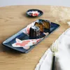 日本で古来より愛されている錦鯉。 撥水の技法を用いて、錦鯉の赤と白の美しさがより際立つようにデザインしています。 こちらのセットで是非お寿司をお楽しみください。