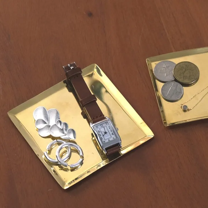 ブラスのシンプルなコースターです。 素材にヴィンテージ感があり味わいがあります。 ハンドメイドの為若干の個体差がある場合がございます。 アクセサリーの受け皿としてや、海外のコインを乗せてちょっとした空間作りに。 時の流れを感じさせてくれる一生物のアイテム。 プラスチックやアイアン素材とはまた違う、自分だけのレトロなアイテムになります。