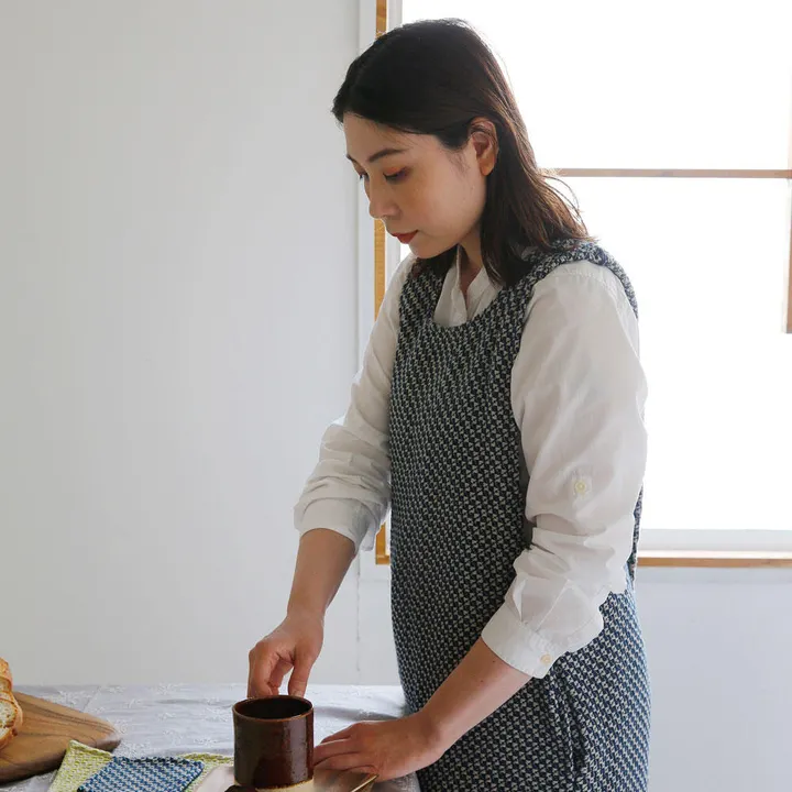 サイコロのような幾何学模様の織りを施したエプロン。 ほどよい厚みがあり、しっかりしているので冬にぴったりです。 厚みがあるので肩に負担がかからないクロスのデザインになっています。 左右にハンギングポケットが付いているので便利です。 DIYやプランターの植え替え、作業の際にも。 首にひっかけるタイプではないので長時間つけていても疲れません。 着脱が楽で、体型をカバーできるのが特徴。 *ポケットあり 【紐なし】【ファブリック】【キッチン】【カフェ/喫茶店】【DIY】【ガーデン】