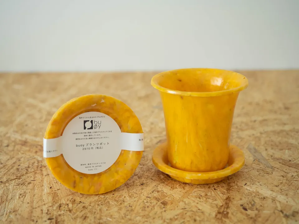 <仕様> buoyプランツポットは2種類の形状がございます。 decoはこちら https://buoy.stores.jp/items/60c5ce3d2bf9014b9ad15c57 ◆「boco」(凹形状) くびれの形状が特徴。底に排水形状あり。受け皿もついています。 <サイズ>83mm×83mm×80mm <重量>鉢と受け皿合わせて70g。ペットボトルキャップ35個相当の海洋プラスチックごみが使用されています。 <容積>市販の2号(Φ60mm)の苗をいれるのにぴったりのサイズです。 <材料/原産国>日本の海岸に漂着した海洋プラスチックごみを材料に、日本で生産しています。 <使い方> 底に排水用の穴が空いています。鉢底ネットを敷いて土を入れお好きな種や苗を植えてください。(鉢底ネット、土、種はついておりません) <注意事項> ※本製品の材料は海岸に流れ着いてきた海洋プラスチックごみです。ごみはビーチクリーンの場所や時期によって異なります。色や模様は偶然集まったゴミに由来する為、製品ごとに色や模様が必ず異なります。偶然うまれた世界に一つの模様として、届いた製品を大事にしていただけますと幸いです。 ※通常同一製品を大量に生産することをプラスチックは前提としていますが、buoyはひとつひとつ異なった表情を大切にしております。そのため製品ごとに厚みが違ったり、縁に欠けがある場合(弊社品質基準をクリアした物のみ)がございます。あらかじめご了承ください。 ※海洋プラスチックごみは海中を漂流している間に有害物質を吸着している可能性があります。buoyの製品は製品表面をフィルムでコーティングし海洋プラスチックごみを直接ユーザーが触れることがないようになっていますが、念のため直接口に入れたり舐めたりしないようにしてください。 ※buoyが出来ているプラスチックという素材は割れにくく傷つきにくいという特徴があります。新たにゴミを増やさないためにも必要最低限の簡易包装でのお届けとなります。