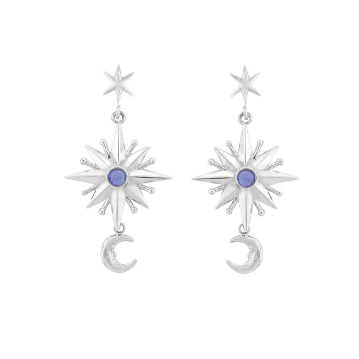 星は遠くで輝きながらあなたの耳元でも物語を語ってくれます 星のチャームの中央には航海のお守りとして使われてきたアイオライトをセット あなを導いてくれるでしょう
