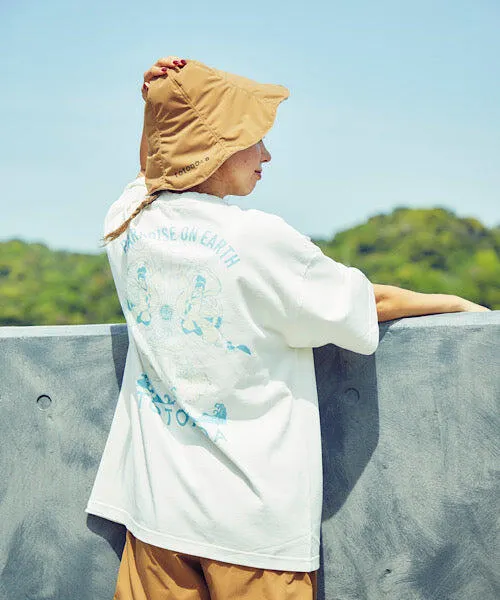 <素材> リサイクルコットン糸を使った生地を使用。 肌が透けない厚み感と張り感でとても着やすい 素材感です。 <デザイン> リサイクルコットン糸を使った生地を使用。 肌が透けない厚み感と張り感でとても着やすい 素材感です。 サイズは少し大きめサイズ。 基本的にはメンズサイズでの展開ですが SとMはレディース用としてもお使いいただけます。 バックプリントは極楽浄土をイメージ。 サウナで心身共に安らぐ時間を過ごし、 ととのった後で着心地の良いTシャツで さらに心地よく。 バックプリントには天女や風呂桶や手ぬぐいを持ったシーサーが。 心地よいサウナライフへと誘います。 ボディはユニセックスサイズです。 レディースならばSorMサイズを、 メンズならMorLサイズをおススメします。