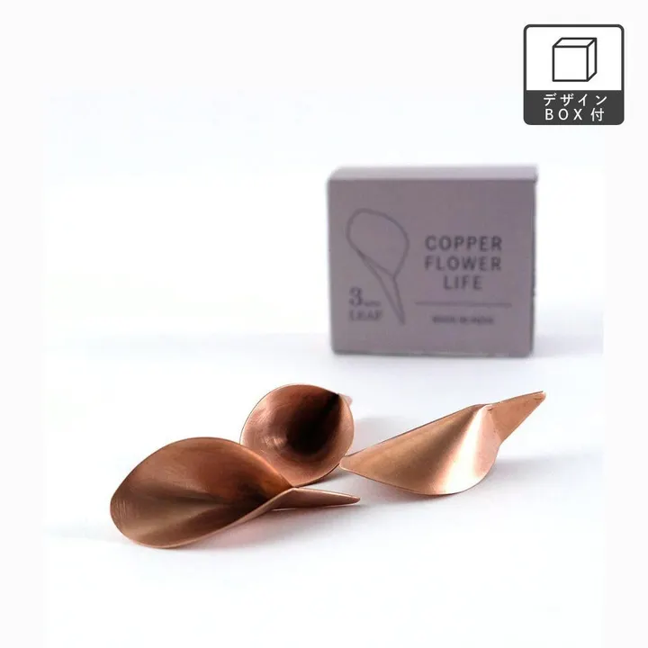 お花を飾りたいけれどすぐに枯れてしまう…という悩みから生まれたCOPPERシリーズから、水の中に沈んでいる植物の葉っぱを連想させるリーフ型が新登場。 切り花が傷む原因のひとつに、水の中で発生した雑菌が切り口で繁殖し、水の吸い上げが悪くなってしまうことがあげられます。COPPER(銅)素材は抗菌作用があるといわれており、雑菌の繁殖を抑えることで切り花を長くきれいに保つことができます。 COPPER(コッパー)とは銅のことで、shesayのCOPPER製品はすべて職人によるハンドメイドで生産しています。独自の質感や深みのある光沢が上品な雰囲気を醸し出し、使うほどに増していく風合いも銅素材ならではの特徴です。年月の経過とともに、自分だけのエイジングを感じられる愛着のあるものへとなっていきます。