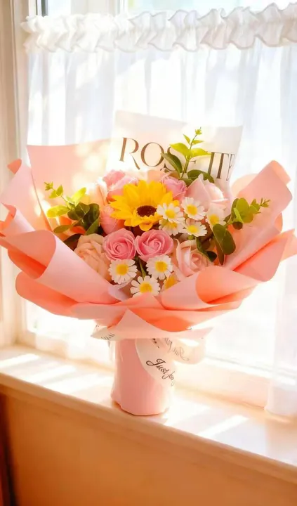※プレゼントに最適なソープフラワーの花束です。ほのかに石鹸の香りがする、石鹸素材から作られた造花なので、生花に比べて、長く鑑賞が楽しめます。
