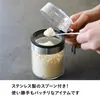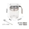 【片手で使える『耐熱ガラス調味料ポット』】 片手でパッと開けて使える『耐熱ガラス調味料ポット』。 調味料を酸化から守るフタが付いており、ハンドルを持つ手でそのまま開けられるのでとても便利です。 ステンレス製のスプーンも付属しているので、調味料をお好みの分量で入れられます。 【片手でワンタッチ開閉】 フタは親指で押さえるだけで開けられるワンタッチ開閉タイプ。調理中もスムーズにフタを開けられます。 【ステンレス製のスプーン付き】 付属のスプーンはステンレス製。お好みの量だけすくってスムーズに調理出来ます。 【製品情報】 商品名: 耐熱ガラス調味料ポット サイズ: W125×D80×H115mm 重量: 235g 満水容量: 350ml 実容量: 250ml [本体]ほうけい酸ガラス [フタ]ポリスチレン樹脂、ステンレス鋼 [ハンドル部]ステンレス鋼、ABS樹脂 [スプーン]ステンレス鋼 耐熱温度差: 120℃ 原産国: 中国