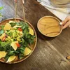 無垢チーク材の取り皿に便利な直径15cmの丸皿と角皿が入荷しました☆ 安心の天然素材で作られた丈夫な食器になります! チーク材は古来より、高級家具や、ヨットなどの船舶の甲板材などで重宝された、水にも強く、耐久性の高い素材になります。 天然の木材の温かみたっぷりで、使い心地や手触り、使い込んだ手への馴染みも良く、末永くご愛用して頂けます。 ウレタンやラッカー塗装はしておらず、オリーブオイル仕上げになっておりますので、体にも優しく、自然の艶で高級感があります。 量産品とは違う、手にして頂いた時の手触りの違いにご満足いただけると思います! ご家庭のキッチンではもちろん、キャンプやアウトドアにも最適な一品です☆ チーク材の独特な香りがする場合がございますが、洗浄して頂き、自然乾燥していただければ徐々に無くなります。 自然木の木目の美しさを実感して頂けるお品です! ご注文時に丸皿と角皿をお選び頂き、ご指定下さいませ。 サイズ:丸皿・角皿共に 幅15cm 奥行15m 高さ2cm 材質:無垢チーク材・オイル仕上げ 最善の注意を払っておりますが、ナチュラル素材でハンドメイドの為、色合い、大きさ等、多少異なる場合がございますが、ご了承くださいませ。