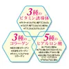 3つの要素+6つの無添加が肌にうるおいを与える。 ※3種の高濃度ビタミンC誘導体配合 (テトラヘキシルデカン酸アスコルビル) (パルミチン酸アスコルビルリン酸3Na) (アスコルブルグルコシド) ※3種のコラーゲン  (加水分解コラーゲン)  (水溶性コラーゲン)  (サクシノイルアテロコラーゲン) ※5種のヒアルロン酸  (ヒアルロン酸Na)  (ヒアルロン酸ヒドロキシプロビルトリモニウム)  (加水分解ヒアルロン酸)  (加水分解ヒアルロン酸アルキル(C12・C13)グリセリル  (アセチルヒアルロン酸Na)  6つの無添加  アルコールフリー・合成着色料・合成香料・パラベン・鉱物油・シリコーン