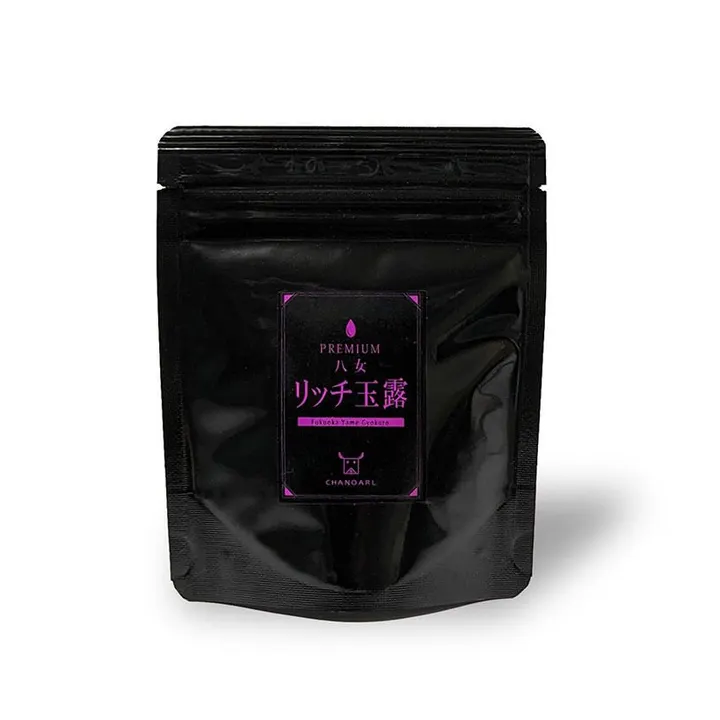プレミアム八女茶リッチ玉露は、高級玉露の産地「福岡県八女」で育てた良質な茶葉だけを厳選して緑爽やかなテイストに仕上げています。まろやかな旨味とほんのり甘いとろみが特長のリーフグレードの玉露を贅沢にティーバッグにしました。 玉露に多く含まれる「テアニン」は旨味作用だけでなく、ストレスの抑制やリラックス効果があると言われています。また「ビタミン」も多く含まれているので、美容や美肌効果も期待できます。 お気に入りのカップにティーバッグ1個を入れて50〜60℃に冷ましたお湯を少量100ml程度注ぎ、2〜3分かけてじっくり抽出します。極上八女玉露がティーバッグで手軽にお楽しみいただけます。 ティーバッグは抽出性の高い三角テトラ型メッシュタイプを採用。広い空間の中で茶葉が大きく広がり、急須で淹れたような香りと美味しさがしっかり抽出されます。ティーバッグの素材は、カラダと環境にやさしい植物由来の素材を使用しています。 冬はホットで、夏は水出しで。高級感のあるオシャレなパッケージは保存に便利なチャック付き。ご自身へのご褒美や大切な方へのギフトに最適です。