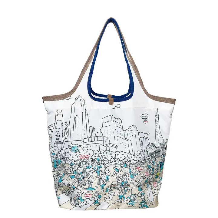 一般社団法人『脳フェス実行委員会』は、脳卒中や障がいに関する社会的理解を広め、その支援を行う団体です。 yoccatta は、『脳フェス』の皆さんに依頼され、yoccatta バックパックをベースに、“片手でも使いやすい 3way バックパック” を企画し、『SIDE MY LIFE』シリーズとして 2023 年に発表しました。 今回、ご自身が片麻痺当事者でもある代表の小林純也氏が提唱する、障がい者と健常者の垣根を無くす『グラデーションな社会』を表現するトートバッグを企画しました。 障がい者やその家族、仲間が集う『脳卒中フェスティバル』(通称:脳フェス)が一年に一度、開催されます。 そのグラフィックを担当する、絵本作家 中垣ゆたかさんに、『グラデーションシティ・TOKYO』と題して描いていただきました。 左は渋谷、右は浅草。人が混み合う交差点の中に、障がい者、高齢者、子供たち、警察官、そして “ゆうれい” までも混ざり合って、それぞれの小さなストーリーを散りばめています。 吹出の中には、外国人が最初に覚える日本語を描いています。 何気ない柄の中に、身近な出来事や旅行の思い出を見つけることができる、楽しいトートバッグができました。 この『グラデーションシティ・TOKYO』柄トートバッグの売り上げの一部を『脳フェス』に寄付する予定です。 yoccatta は、この機に『守ってあげたい!プロジェクト』と題して、新たな活動を始めます。