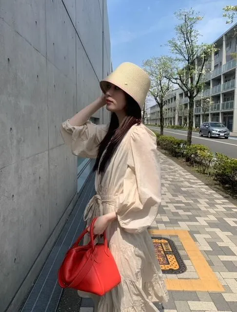 COLOR PIPING BUCKET HAT 【つば先にグログランリボンの施されたバケハ】 リボンピンク