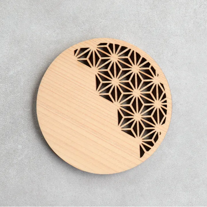 紀州材ヒノキの和柄コースター2枚入 麻の葉 丸