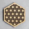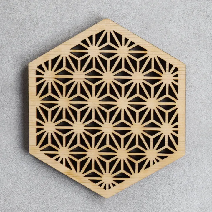 紀州材ヒノキの和柄コースター2枚入 麻の葉 六角