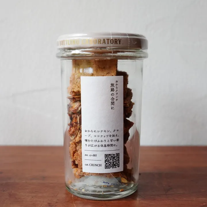 "クランチ"はザクザク・ボリボリ・ガリガリと噛み砕く音を指す言葉。 おからとナッツの”噛むことを楽しむ”お菓子。 甘さを控えめのおからクランチは、シナモン、クローブ、ココナッツを生地に混ぜ込み、噛むことで甘みを感じられるビスケットです。 アーモンドやカボチャの種のナッツ類の歯応えで満足感プラス。ドライフルーツのバナナも強い甘味がアクセント。 噛むことで味わい深く、罪悪感なく、満足感が得られるお菓子に仕上げました。 働く女性や健康を意識する人たちに寄り添う味方です。 仕事や育児で頑張る合間に。 健康に気遣いつつ自分を労わる合間に。 いつも頑張るあなたにクランチは寄り添います。 お子さんと食べても安心! よく噛んで、楽しくお召し上がりください。