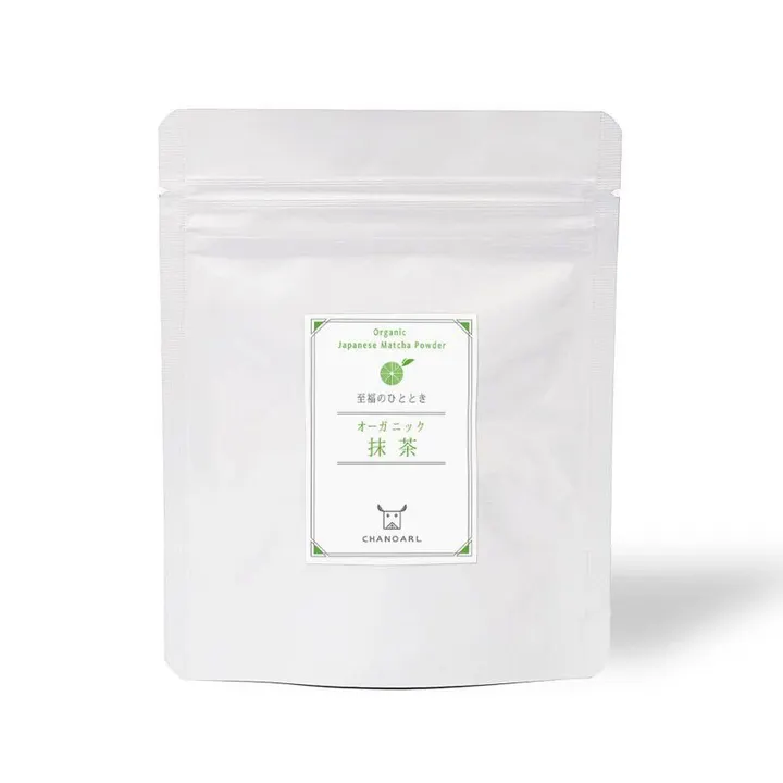 【有機抹茶|鹿児島県産一番茶100%使用】 自然の恵みで育まれた、まろやかで香り高い国産有機抹茶です。 農薬や化学肥料に頼らず、自然の力で丁寧に育てた鹿児島県産一番茶のみを使用。 石臼でじっくり挽き上げた抹茶は、粒子が細かく、泡立ちがよく口当たりなめらか。 香料・着色料・保存料などの添加物は一切不使用。原材料は「有機JAS認証の碾茶100%」です。 【抹茶本来の香りとコク】 石臼挽きならではの繊細な香り立ちと、まろやかで奥深いコク、ほどよい旨味が調和した上質な味わい。 ホットはもちろん、水にもサッと溶けやすいため、暑い季節には冷抹茶としても美味しくお召し上がりいただけます。 【抹茶ラテにもおすすめ】 ミルクで割っても抹茶本来の風味がしっかりと残るため、濃厚で香り高い抹茶ラテが作れます。自宅で手軽に“カフェクオリティ”の一杯をお楽しみいただけます。 自然の力と伝統の技で仕上げた、ワンランク上の国産有機抹茶。 お点前はもちろん毎日のリラックスタイムや、おもてなし、お菓子作りにもぜひご利用ください。 白基調のかわいいパッケージは保存に便利なチャック付き。キッチンやテーブルにさりげなく置いておくだけでオシャレ感UP。ご自身へのご褒美や健康志向の方へのギフトにも喜ばれます。