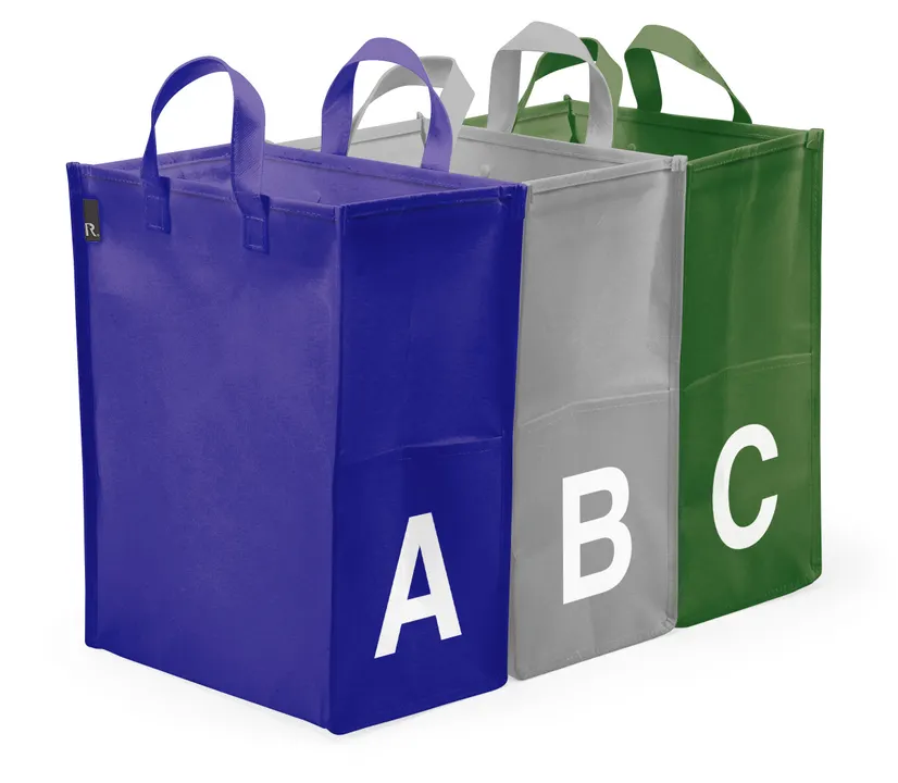 New Material この製品の芯材に使われている素材はペットボトルリサイクル80%を使用したポリエステルを使用しています。 ルートート rootote /ルー・ガービッジ 30L 軽量で大容量。屋内外で使えるゴミ箱にもなるトートバッグ「ルー・ガービッジ」 3つで1セットです。 目的地ではごみ袋をセットしてゴミ箱として、帰りはゴミ袋を取り出して他の荷物をいれて、持ち帰ることもできる優れもの。 内側のドットボタンでごみ袋の4辺を固定します。 ダストボックスに早変わり。 サイドには、替えのゴミ袋を入れておけるポケット付き。 ゴミの持ち帰りもゴミ出しもスマートに行えます。 アウトドアの簡易ゴミ箱のほか、ウェットスーツやスノボのウェアなど水濡れするスポーツ用品の持ち帰りにも。 車の荷物の整理ボックスや、お部屋のダストボックス、パーティでのクーラーボックスの代用としても! エコバッグとしても重宝します。 もちろんインテリアとしてお部屋においても楽しめます。 3コセットで分別にも便利! 使わないときは、たたんで隙間に収納できます。 *リサイクル素材のため、若干の素材の色の濃さ、生地の厚みにばらつきと、素材の特性上、シワが生じます。予めご了承ください。