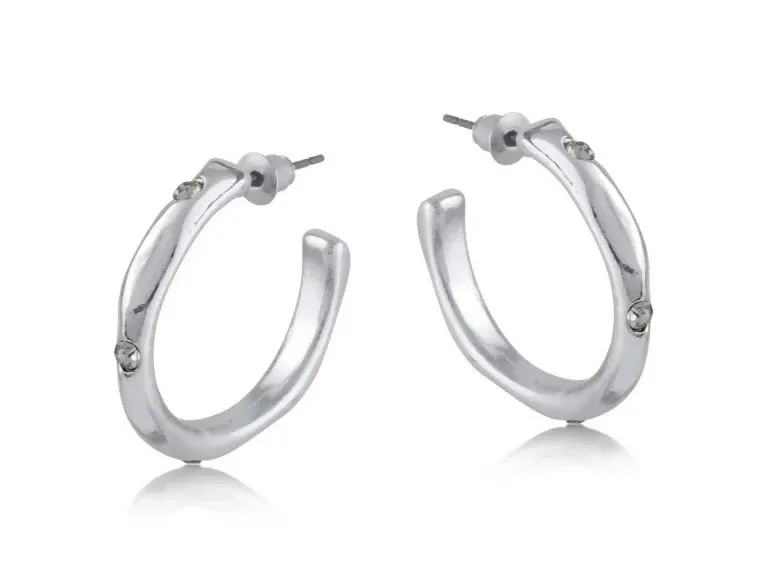 3257 パメラがちりばめられたオーガニックシェイプフープピアス silver