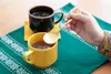 “Chalo Chalo(チャロチャロ)”とはヒンディー語で「Let's Go!」の意味。 カレースパイスなどをイメージした配色が食欲をそそる器シリーズです。 ターバンを巻いたカレーおじさんが、奥深いカレーの世界へお連れします。 スタッキングできるマグは、手狭な食器棚でも収納場所に困りません。 食後の一杯にはもちろん、スープマグとしても活躍します。 飲み口のエッジ部分は釉薬がのりにくいので、濃色ながら自然な濃淡ができ、味わい深い表情に。フラットになっている持ち手部分は意外と使い勝手がよく、デイリーユースにぴったりです。 同シリーズで濃色ファブリックがございますので、濃×濃の組み合わせを楽しんで! シンプルなので、飲食店などの業務用にもおすすめしております。 ※カレーおじさんのシールが食器に付いています。シールを剥がせば単色の器としてお使いになれます。