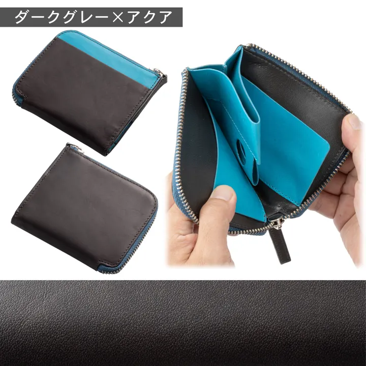 「小さい、使いやすい」の黄金比、 +6mm第3世代オールインワンL型ファスナー財布「Paradigm」 ダークグレー×アクア
