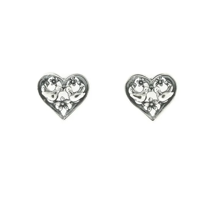 Aretes Pajaritos Enamorados|透かしハートのピアス(シルバー)