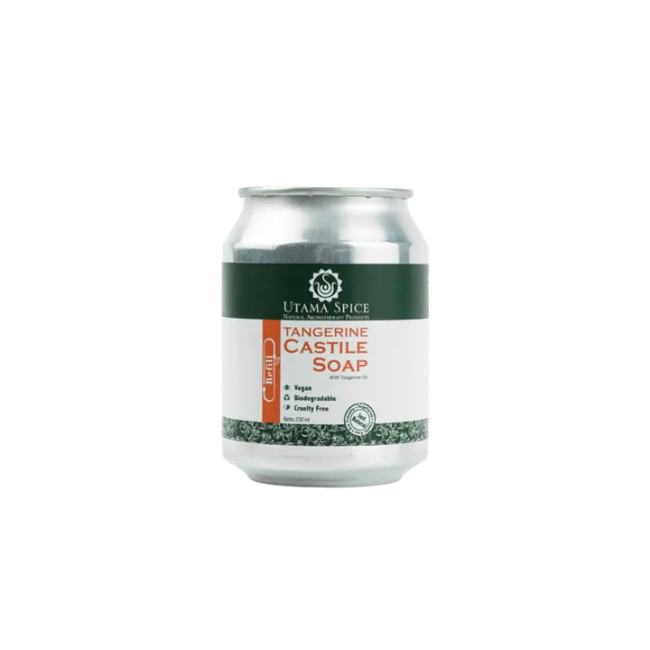 カスティールソープ タンジェリン の詰め替え用です。 環境をに配慮して、、リサイクル効率が高いアルミ容器を使用しています。 アルミ容器なので所々へこみがございます。 ご了承願います。 容量:230ml