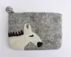 すべて手作業で作られた、どうぶつの柄のかわいいポーチ。 オリジナルデザインのどうぶつ柄、フェルトの質感と合わさって、なんともほっこりとしたかわいらしさ! フェルトのポーチはクッション性があるので、携帯を入れたり、ペンケースにするのにピッタリです。 どうぶつの模様は針で何度もさして、フェルト地にからませていくニードルポイントで施します。 フェルトは縫い目がないのが特徴です。羊毛に石鹸水のようなアルカリ性の水溶液を含ませて圧力をかけ、もんだり巻いて転がしたりして縮絨(しゅくじゅう)させ成形します。縮絨にはたいへんな手間隙がかかります。 中面にはコットンの裏地が付いています。手作りのほっこりしたあたたかさを感じてください♪