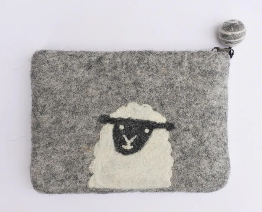 すべて手作業で作られた、どうぶつの柄のかわいいポーチ。 オリジナルデザインのどうぶつ柄、フェルトの質感と合わさって、なんともほっこりとしたかわいらしさ! フェルトのポーチはクッション性があるので、携帯を入れたり、ペンケースにするのにピッタリです。 どうぶつの模様は針で何度もさして、フェルト地にからませていくニードルポイントで施します。 フェルトは縫い目がないのが特徴です。羊毛に石鹸水のようなアルカリ性の水溶液を含ませて圧力をかけ、もんだり巻いて転がしたりして縮絨(しゅくじゅう)させ成形します。縮絨にはたいへんな手間隙がかかります。 中面にはコットンの裏地が付いています。手作りのほっこりしたあたたかさを感じてください♪