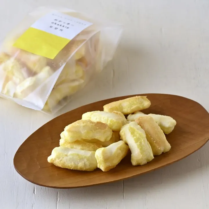もち米と油と塩だけで作ったシンプルなおかき、 その名も“おかっきー”。 国産もち米100%の搗きたて餅で作った生地に、 香り豊かな伊賀の圧搾生搾り菜種油を絡め、 オーストラリアの天日塩をまぶしました。 菜の花畑を思わせる優しい黄色をまとったおかきは、 さくっと軽くふわっと溶けるような食感。 もち米の自然な甘みと菜種油の風味が広がり、 旨みのある天日塩がその味わいを引き立てます。 まっちんとギャルリ百草さんとのご縁から生まれた とっておきの塩おかきです。    <ご発注いただける方・ご購入いただけるお客様へ> 餅は生きものです。 搗きたての餅をそのまま切って焼く製法で、 シンプルな材料だけで作っておりますので、 その時によっておかきの膨らみ方や焼き色、食感が少し変わってきます。 そんな毎回の違いも楽しんでいただけたら嬉しいです。 〈東海3県(愛知・岐阜・三重)限定〉商品となります。 納品先住所上記3県以外の場合にはご発注いただけません。ご発注いただいてもキャンセル処理をさせていただくことになってしまいますため、あらかじめご了承ください。