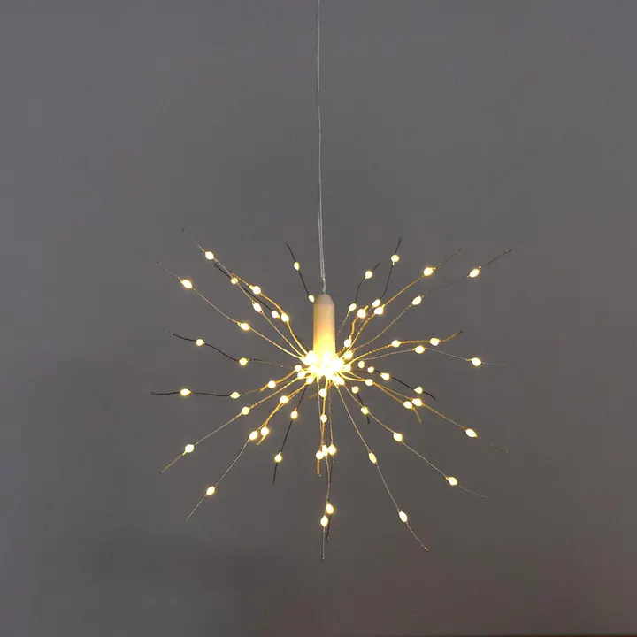 細く柔らかなワイヤー製なので、開き具合や形状をアレンジできます。 温かみのある心地よい灯りで、暗い時間帯はもちろん、明るい時間帯も爽やかに空間を彩ってくれます。 モビールのように一つだけ飾ってもよし、いくつか組み合わせれば光に包まれるような幻想的な空間を演出できます。 普段のインテリアから特別な日のデコレーションまで、幅広く使えるアイテムです。 8パターンの点灯機能が付いているので、何通りも楽しんでいただけます。 LEDライトは火事の心配がなく、小さなお子さまやペットがいるご家庭でも安心してご使用いただけます。 電池で点灯しますので、コンセントが無い場所など、飾るところを気にせずお使いいただけます。 吊り下げても点灯や消灯の操作がしやすいようリモコンが付いています。 8パターンの点灯機能と、調光、タイマー(6時間後に消灯し、18時間後に点灯)付き。 ●LEDライトの点灯と付属品について *単3乾電池4本使用(別売) *連続点灯時間約40時間(電池の種類や使用環境、ご使用の頻度によって異なります。) *点灯・点滅8段階調節 *リモコン付(CR2025) *タイマー付き:6時間(6時間後に消灯、18時間後に点灯します) *デザインボックス入り *LED耐久年数3〜5年 *LEDの数:120球 ★2022年のワイヤーデコレーションブルーミングと形状は同じですが、LEDライトのサイズが異なります。こちらの方が少し大きめで、明るいです。 ★【新規】商品はこちら ★【人気】商品はこちら 【雑貨】【インテリア】【X’mas】【クリスマス】【ハロウィン】【花火】【花】【イルミネーション】【照明】【ディスプレイ】【ハンギング】【プレゼントボックス】【DTAW】
