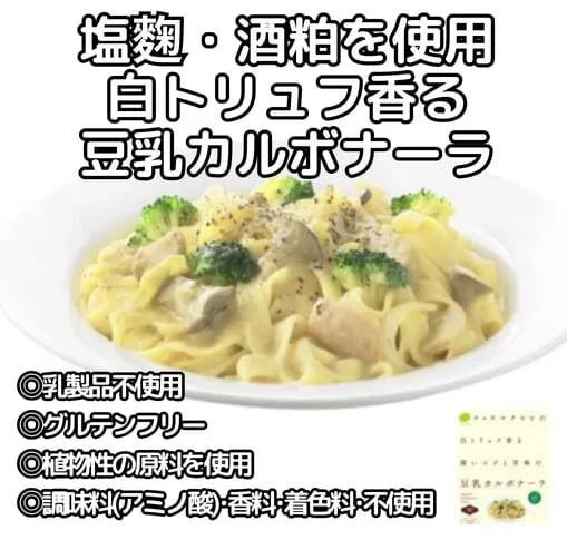 白トリュフ香る 深いコクと旨味の 豆乳カルボナーラ(1食分140g)<塩麴・酒粕を使用。~白トリュフ香る~>◎植物性の原料を使用 ◎調味料(アミノ酸)・着色料不使用 ◎乳製品不使用 ◎グルテンフリー