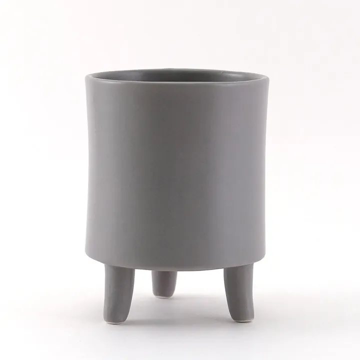 磁器製プラントカバー(2サイズ・3色)/円柱 丸 パステルカラー Lサイズ GY(グレー)