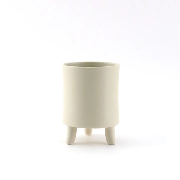 磁器製プラントカバー(2サイズ・3色)/円柱 丸 パステルカラー Sサイズ IV(アイボリー)