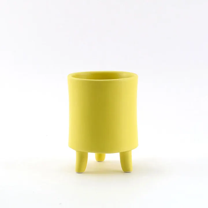 磁器製プラントカバー(2サイズ・3色)/円柱 丸 パステルカラー SサイズYL(イエロー)