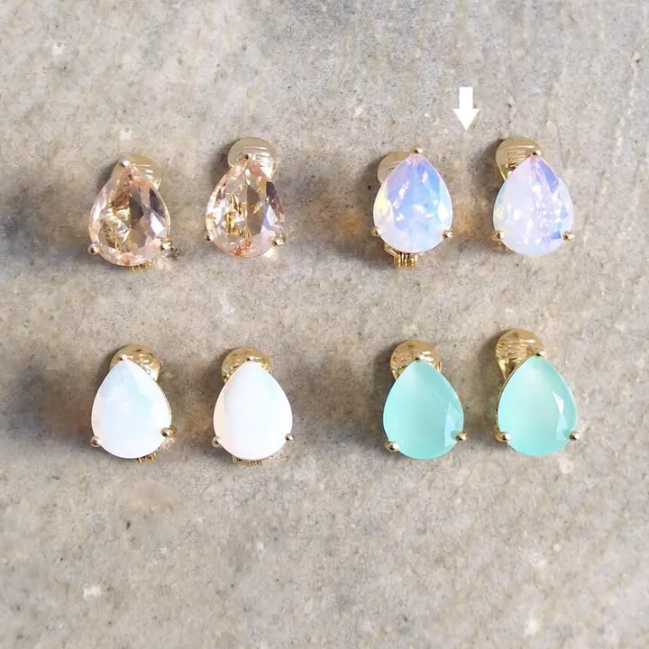 イヤリング【Vintage】/しずく型クリスタルガラスイヤリングPU/GR/WH 瑞々しく美しい色合いと輝きに満ちた クリスタルガラスが印象的なコレクション アンティークショップで目にするような、クラシカルなイヤリングを揃えたコレクション。 デイリーからセレモニーまで幅広いシーンにお使いいただける シンプルながらもOucaらしいアクセントの効いたアイテムが揃います。 コンパクトなフォルムで耳元を爽やかに彩る クリスタルガラスの4つの魅力的なカラーと輝きを、シンプルに楽しめるイヤリング。 しずく型にカットされたクリスタルガラスを石枠におさめたシンプルなイヤリングは メタリックな質感や輝きが中心のラインナップの中に、程よく色づく4つのカラーをまとい視線を集めます。 それぞれの石が放つシャープな輝きと瑞々しい透明感やマイルドなニュアンスカラーを シンプルにお楽しみくださいね◎ ◆詳細◆ クリスタルガラスの透明感と魅力的なカラーを存分に楽しめるイヤリング。 その透明感や輝きを活かすために、 光の入る窓枠仕様の石枠を用い3本の爪で繊細に石を留めることでシャープなカットが引き立ち 美しい輝きと落ち着いたトーンがクリスタルガラスの魅力を引き立てます。 12×9㎜ほどのコンパクトシルエットで耳元にしっくりと収まるしずく型のモチーフは、 コロンとしたかわいらしさとシャープなフォルムを併せ持ち、すっきりと洗練された印象を添えてくれます。 \カラーは全部で4種類/ どちらのカラーも落ち着きのあるトーンの中に凛とした存在感を併せ持ち、スタイリングを選びません。 ●ラベンダーオパール(カラー表記:PU)乳白色とともにほどよい透明感もあるミルキーなラベンダーカラー。 ●ホワイトオパール (カラー表記:WH) はっきりとした発色を楽しめるマイルドな乳白ホワイトカラー。 ●エメラルドオパール (カラー表記:GR) 美しい青緑色の発色を楽しめるマイルドな乳白グリーンカラー。 ●シャンパンローズ (カラー表記:BE) シャンパンのようなほのかな色づきと透明感を楽しめるカラー。【完売しました。】 金具はクリップタイプ。 シリコンカバーも装着しやすく、快適にお使いいただけます。 商品には専用のBOXが無料で付属しますので、ギフトにも最適です◎