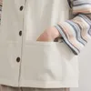 KNXV533-ピンタック織りゆったりベスト・便利ポケットたくさん配色ボタンベスト IVORY/ LL