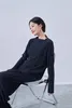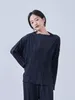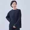 KNNT364-プリーツ加工・カットソー長袖プルオーバー・ボートネック・セットアップ商品・アップサイクル NAVY/FREE