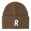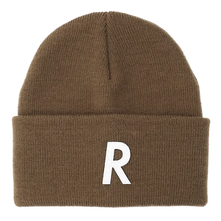 シンプルなアクリル糸のニット帽。折り返しのフロント部分はフェルトのアップリケ。程よい締め付けのダブル編み地。